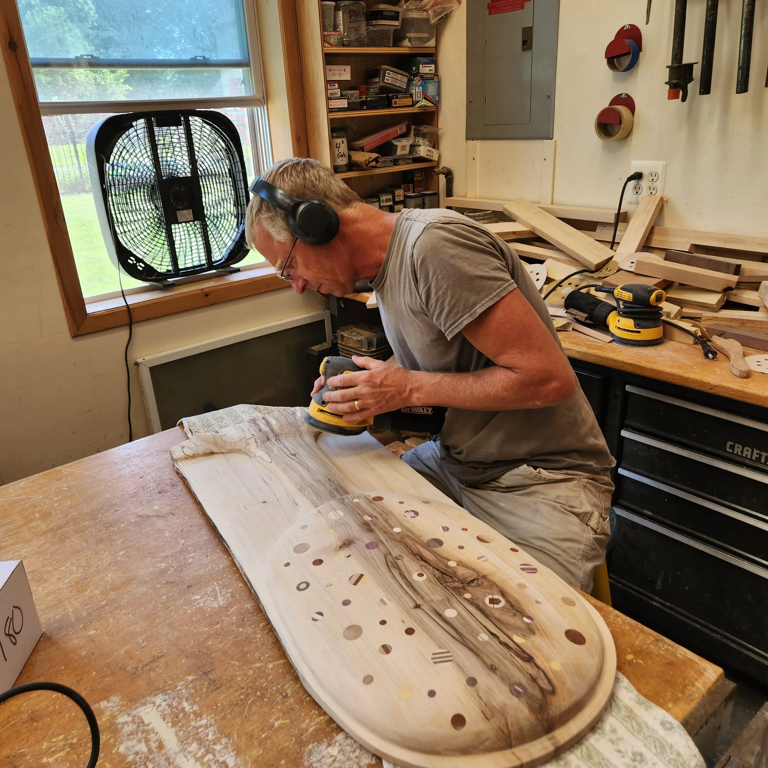 I designed and built my workshop in 2002. Being in the foothills of the Adirondack Mountains, prime hardwoods like cherry, maple, oak, and black walnut are plentiful. The colors and grains of these woods are unmatched. The workshop is a great open space flooded with natural light. With the smell of fresh-cut lumber and the woodstove burning, it's easy to be inspired!